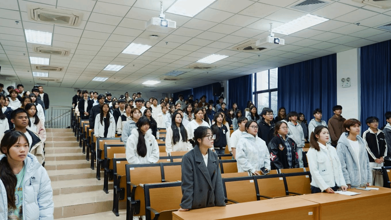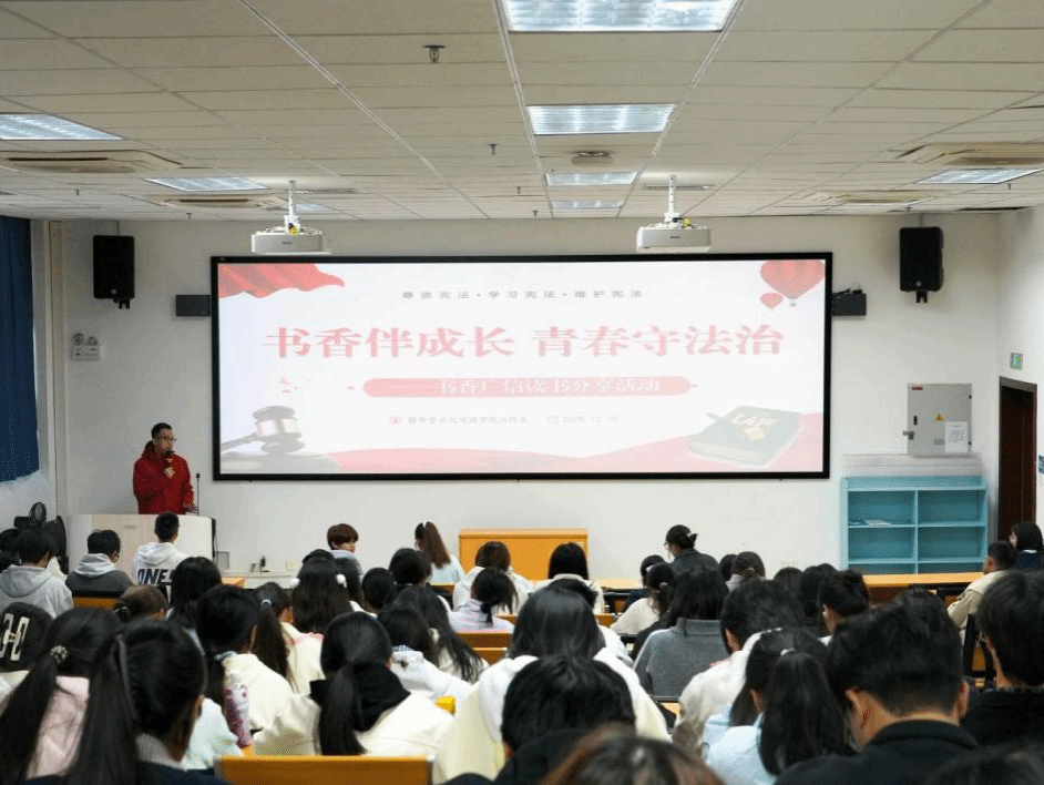 数字艺术与传媒学院 莫兴伟 报道 为深入贯彻落实习近平法治思想,推动法治理念浸润与校园文化建设协同发展,2025年12月16日,由校团委主办、数字艺术与传媒学院分团委承办的“书香伴成长 青春守法治”读书分享活动在墨子楼2—105教室举行。学院团学干部、各团支部代表共计160人参与活动。