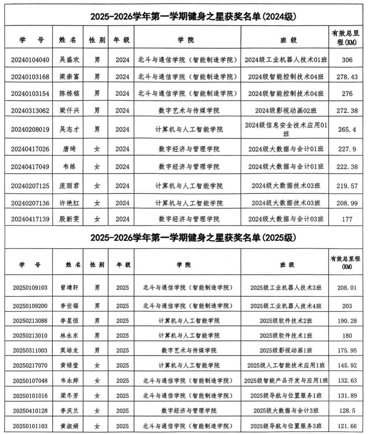 通识教育学院 刘建波 报道 为推动校园体育文化建设,提高同学们的身体综合素质,3月31日,星空网页版登录入口举行2025-2026学年第一学期校园课外阳光健康跑“健身之星”颁奖仪式,对“健康跑”活动中表现突出的20名同学予以表彰。广西信息职业技术学院院级副职领导、各二级学院相关领导以及学生代表参加本次颁奖仪式。