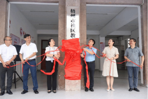 梧州开放大学 黎文华 报道 7月16日上午,梧州开放大学举行“梧州市社区教育指导服务中心”揭牌仪式。广西社区教育指导服务中心执行主任邓艳葵代表广西社区教育服务指导中心讲话,与广西社区教育指导服务中心副主任孙世虹分别作创优提质大讲堂授课,梧州市教育局副局长王剑彪宣读了《关于依托梧州开放大学设立梧州市社区教育指导服务中心的批复函》。梧州开放大学党总支书记、校长聂振传主持揭牌仪式并致辞。梧州职业学院党委书记时伟、相关中职学校领导、社区教育先进工作者代表、师生代表和全体教职工约40人参加揭牌仪式。