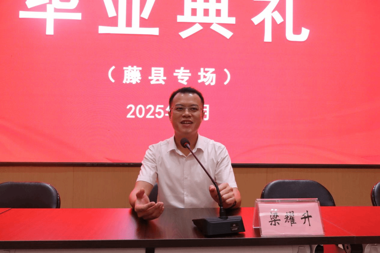 岑溪市委组织部副部长余积勋、藤县党建办主任梁耀升分别参加岑溪专场和藤县专场毕业典礼并发言。他们对梧州开放大学一如既往大力支持干部队伍建设工作表示衷心感谢,重点强调了实施村干部学历提升工程对建设基层党组织和大力推进乡村振兴工作的重要意义。