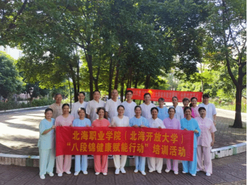 北海开放大学 冯悦 报道 9月18日上午,北海开放大学成功举办“八段锦健康赋能行动”培训活动。本次活动作为“广西社区教育培训项目”的重要组成部分,积极响应国家“体重管理年”三年行动的号召,旨在通过共建共享,探索社区教育体系的有效路径,积累共建经验,进一步扩大社区教育的社会影响力。本次活动借助传统养生文化提升居民健康素养,吸引了二十余位中老年健身爱好者积极参与。