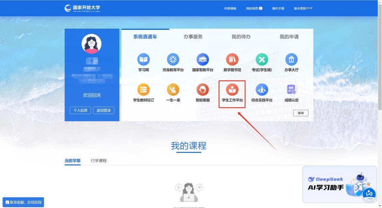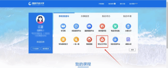 登录后进入即可融合门户,在系统直通车点击“学生工作平台”,进入管理后台。