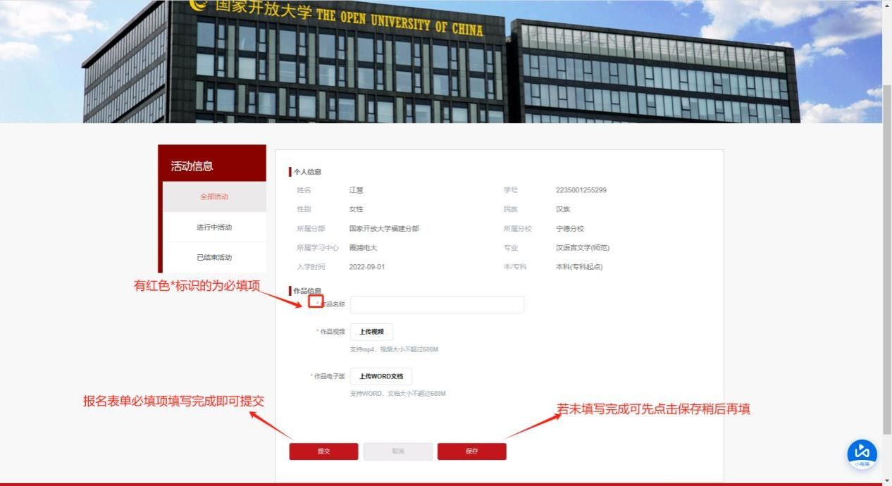 星空网页版登录入口开放教育本、专科在读学生个人或群体(每个群体作品不超过6人)。