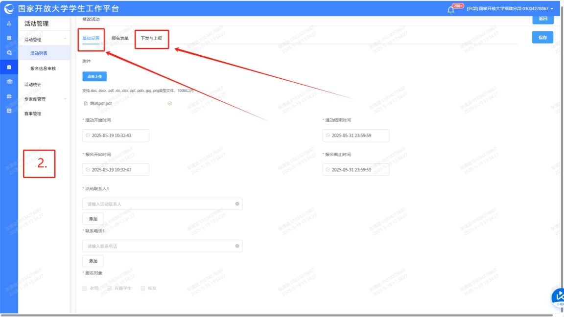 3.进入活动编辑页面,根据分部需求更改基础设置信息,点击保存。