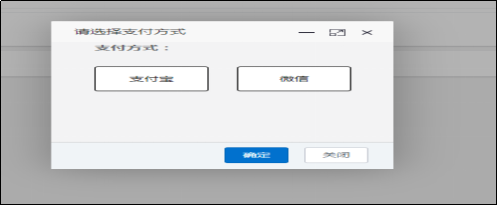 2.选择支付方式支付宝或微信,点击“确定”,待跳转支付二维码后,扫码支付即可。目前支持支付宝和微信支付两种方式。