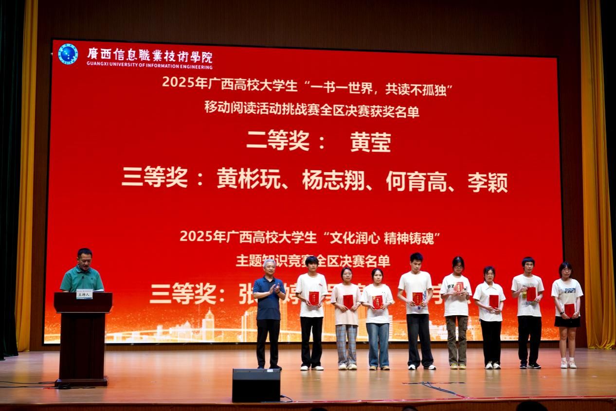 网络与信息中心(图书馆、教育技术中心) 报道 2025年6月4日,为进一步营造“爱读书、读好书、善读书”的良好文化氛围,使阅读成为一种习惯,学习成为一种信仰,星空网页版登录入口在学生活动中心举行2025年图书阅读推广系列活动比赛颁奖仪式。广西信息职业技术学院副院长黄河,教务处(招生就业处)、学生工作部(武装部)、北斗与通信学院(智能制造学院)、计算机与人工智能学院、数字艺术与传媒学院、数字经济与管理学院等部门和二级学院相关负责人参加颁奖仪式。