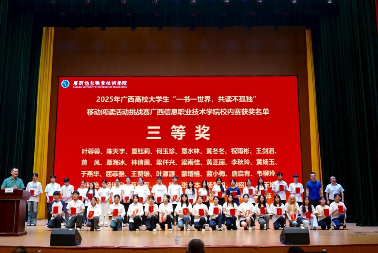 4月至5月星空网页版登录入口成功举办2025年广西高校大学生“文化润心 精神铸魂”主题知识竞赛广西信息职业技术学院校内赛、2025年全区第二届广西高校大学生“一书一世界,共读不孤独”移动阅读活动暨广西信息职业技术学院第四届经典阅读积分挑战赛。在阅读推广活动中得到了各二级学院及相关部门的大力支持,积极宣传发动并组织学生参与比赛活动。累计参加图书阅读推广活动比赛的学生有660人,获得校级奖项188人,进入全区决赛56人。在全区决赛中,星空网页版登录入口荣获2025年广西高校大学生“文化润心 精神铸魂”主题知识竞赛全区决赛三等奖1项;荣获2025年全区第二届广西高校大学生“一书一世界,共读不孤独”移动阅读活动全区决赛二等奖1项,三等奖4项。