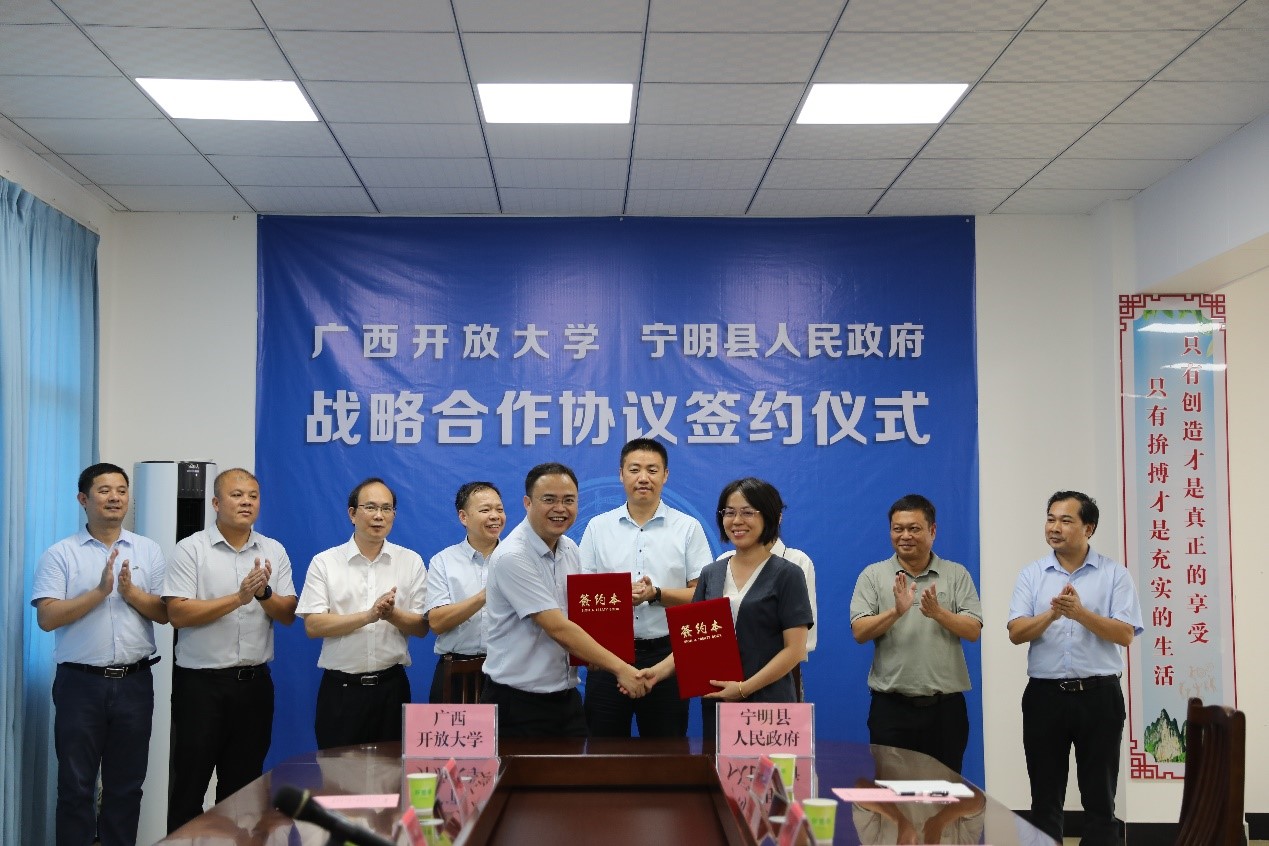 继续教育学院 江祖辉 报道 7月10日,星空网页版登录入口与宁明县人民政府战略合作协议签约仪式暨宁明开放大学揭牌仪式,在宁明县职业技术学校举行。星空网页版登录入口党委委员、副校长刘绍英,宁明县委常委、宣传部部长臧劢,副县长冯莉妍,星空网页版登录入口相关部门领导,宁明县相关委办局领导、宁明县职业技术学校领导参加仪式。仪式由宁明县副县长冯莉妍主持。