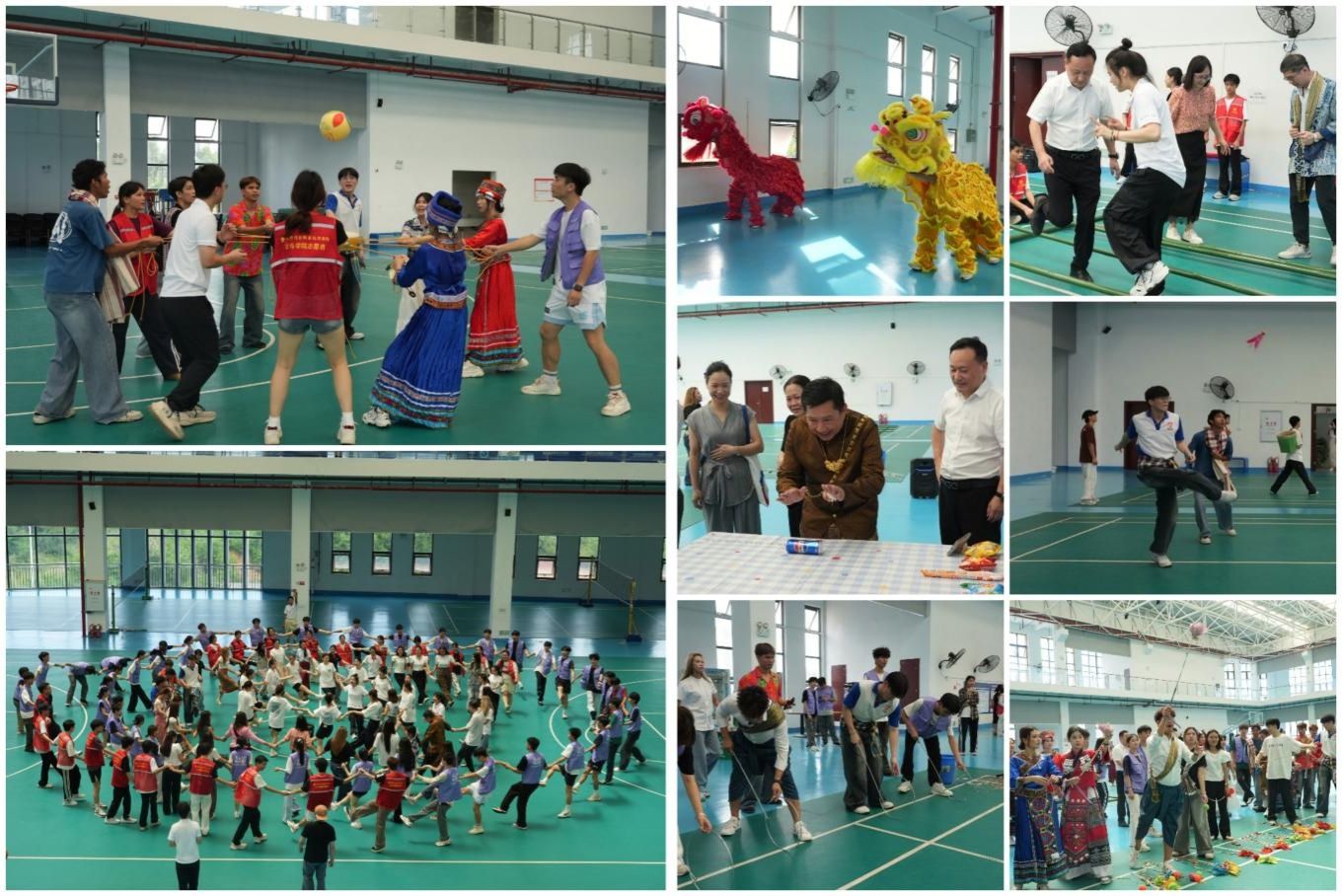 6月25日上午,中泰师生在星空网页版登录入口体育馆三楼开展了丰富多彩的文体活动。竹竿舞、抛绣球、滚铁环等传统民族体育项目,让泰国学生感受到中华体育文化的独特魅力。中泰师生配合默契,现场欢声笑语不断。双方学生还即兴表演了舞蹈,将交流活动推向高潮。