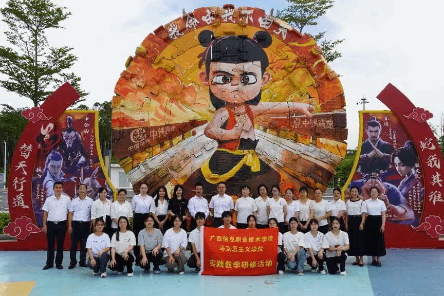 学院党总支和青马研学社参观飞龙服务区巨型哪吒盾构机雕塑