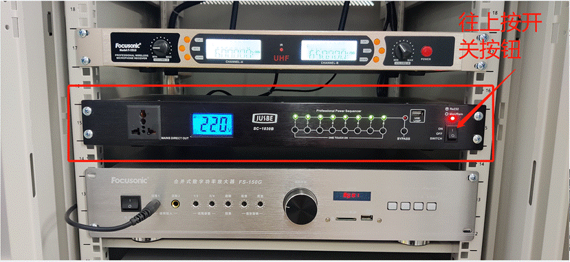 第一步:开启机柜内的电源时序器开启机柜内设备,等待所有设备开启:(如下图)