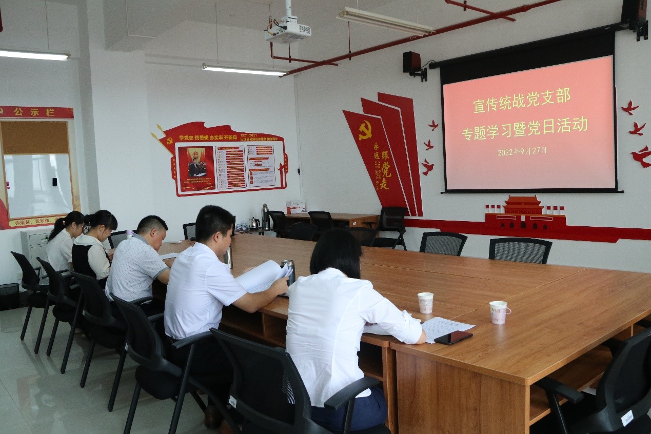 宣传统战支部 黎桃桃报道 9月27日上午,宣传统战党支部在远教大厦1011党建活动室开展专题学习暨9月主题党日活动。校党委副书记罗之勇以普通党员身份参加了活动。活动由支部书记胡峥嵘同志主持。