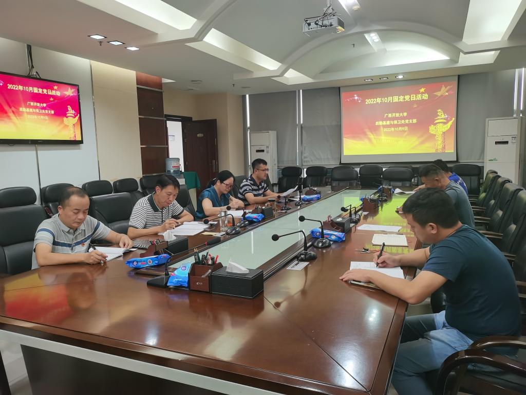 后勤基建与保卫处党支部 蒋周凌报道 10月9日下午,后勤基建与保卫处党支部在远程教育大厦16楼会议室开展10月“固定党日+”活动,龙雪津副校长以普通党员身份参加活动,活动由支部书记蒋智君主持。