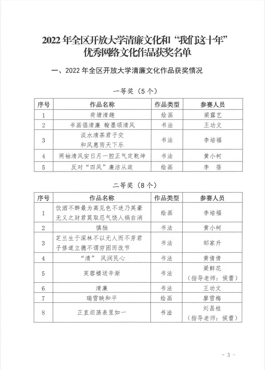 附件:2022年全区开放大学清廉文化和“我们这十年”优秀网络文化作品获奖名单